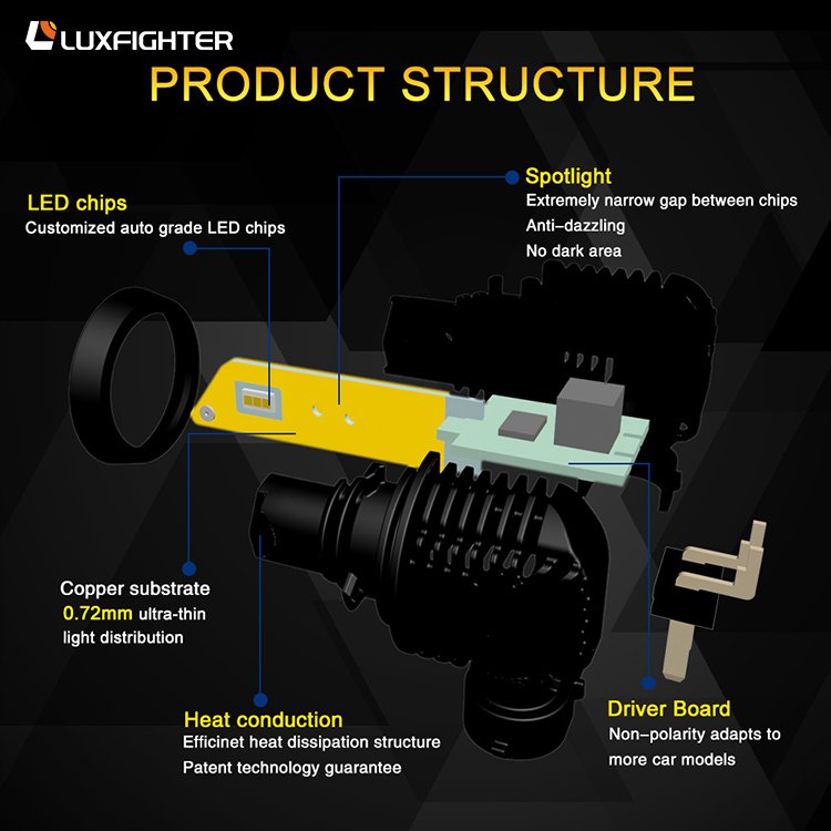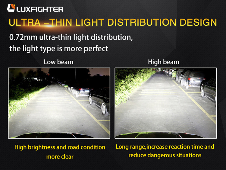 2. Automobilių klasės LED lustas ir plona PCB plokštė daro geresnį žemo ir aukšto spindulio sijos modelį.