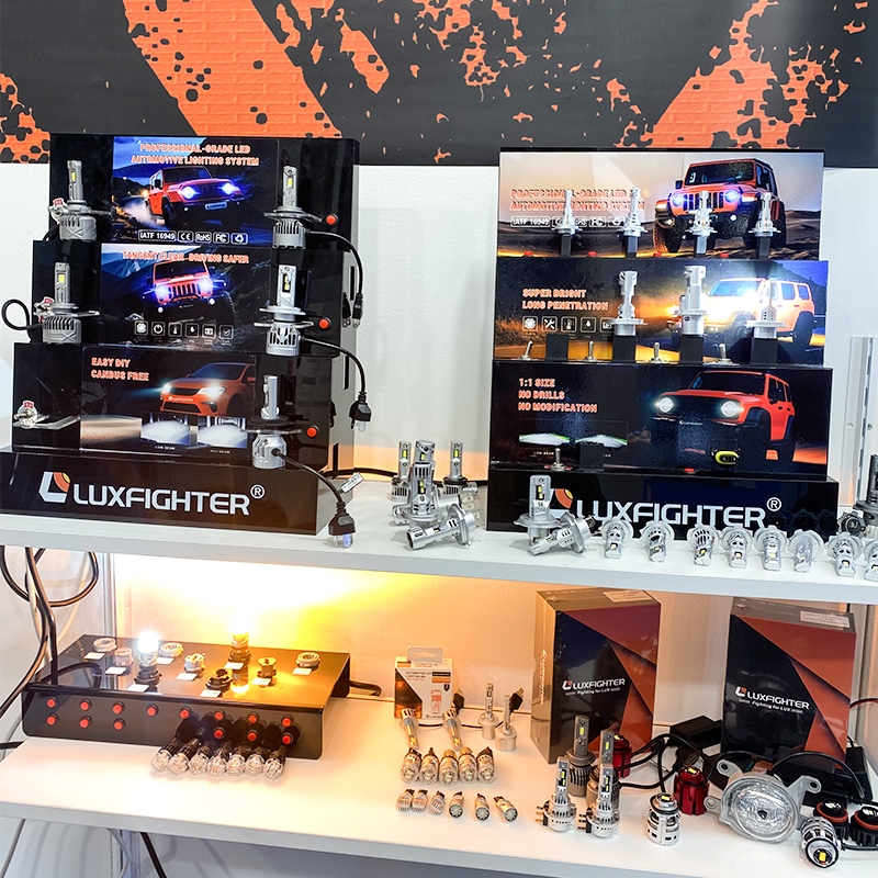 Parodoje LUXFIGHTER pristatė savo geriausiai parduodamas produktų linijas, įskaitant populiarią LED automobilių priekinių žibintų Q seriją:Plug and Play serijos LED priekinis žibintasir išorinės pavaros (P, R serijos) LED priekiniai žibintai: